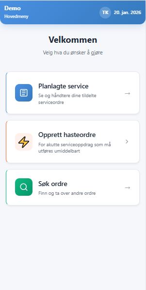 Teknikeren ser kun det som er relevant: planlagte serviceoppdrag, hasteoppdrag og søk. Jobben utføres med digitale sjekklister, bilder og kommentarer – direkte der arbeidet skjer.